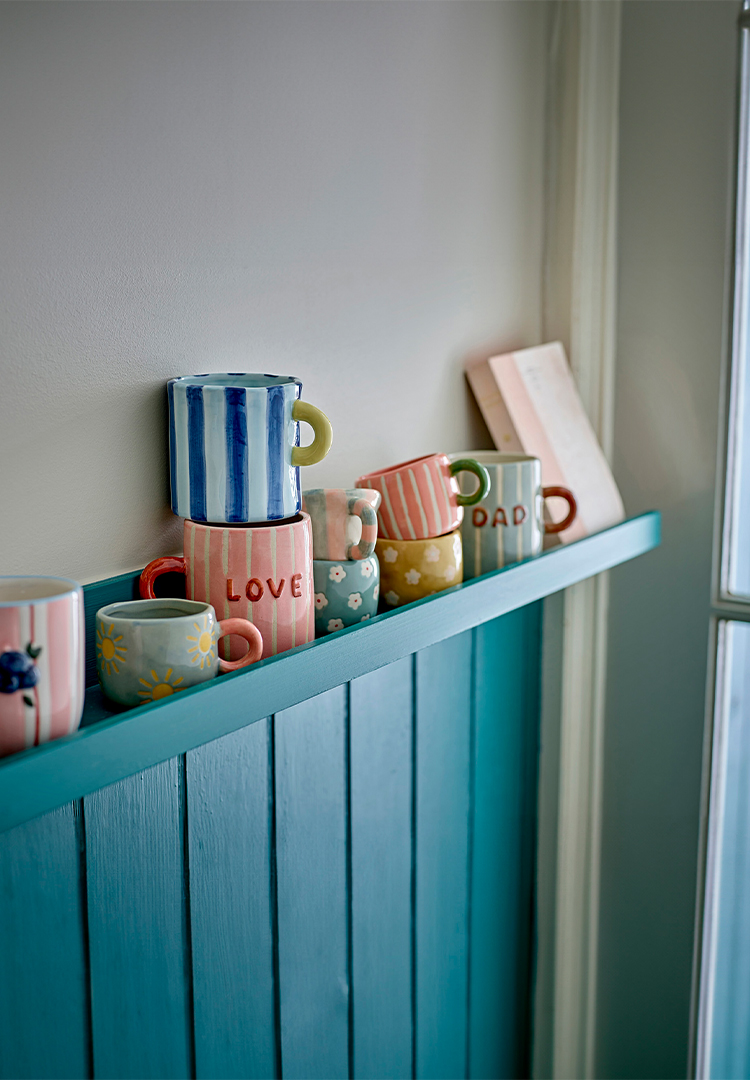 Oregelbundet formad och färgglatt randig: Varje NINI mugg tillverkas i stengods och handmålas – vilket skapar karaktärsfulla unika exemplar. Stapelbar, mångsidig och kombinerbar tillför muggen lekfull lätthet till din dagliga kaffestund.